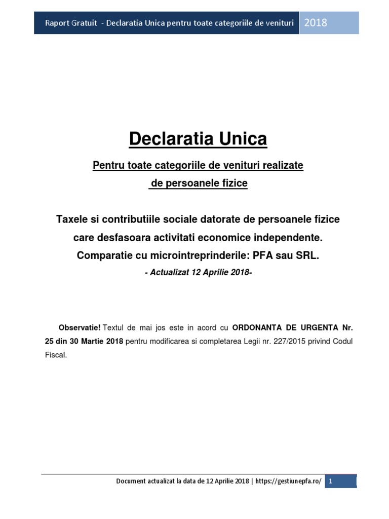 Da, având în vedere modificările legislative, chiar în cazul în care aţi depus formularul 600 trebuie depus formularul 212, al cărui termen de depunere este data de 16 iulie 2018. Reduceri la declaraţia unică 2018: Termenul de depunere al declaraţiei 200 este data de 25 mai, inclusiv, a anului următor celui de realizare a venitului, conform ordinului preşedintelui agenţiei naţionale de administraţie fiscală (anaf) nr. De catre persoana fizica in nume personal. Declarația unică, termen de depunere.
