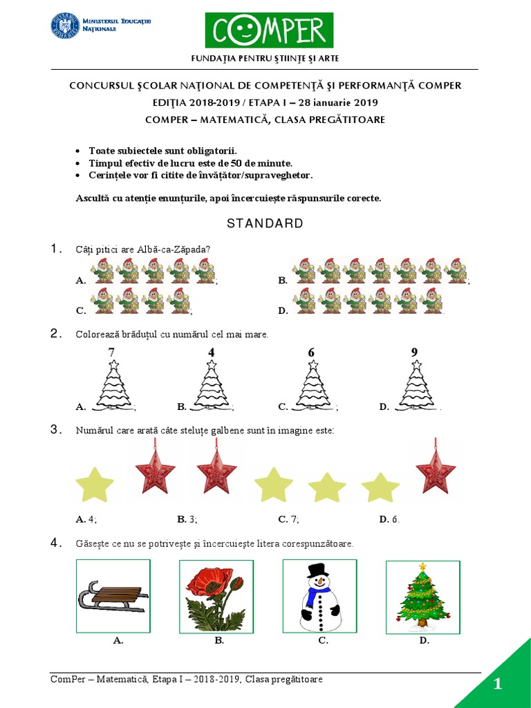 Pentru clasa pregatitoare nu exista grila de raspunsuri!