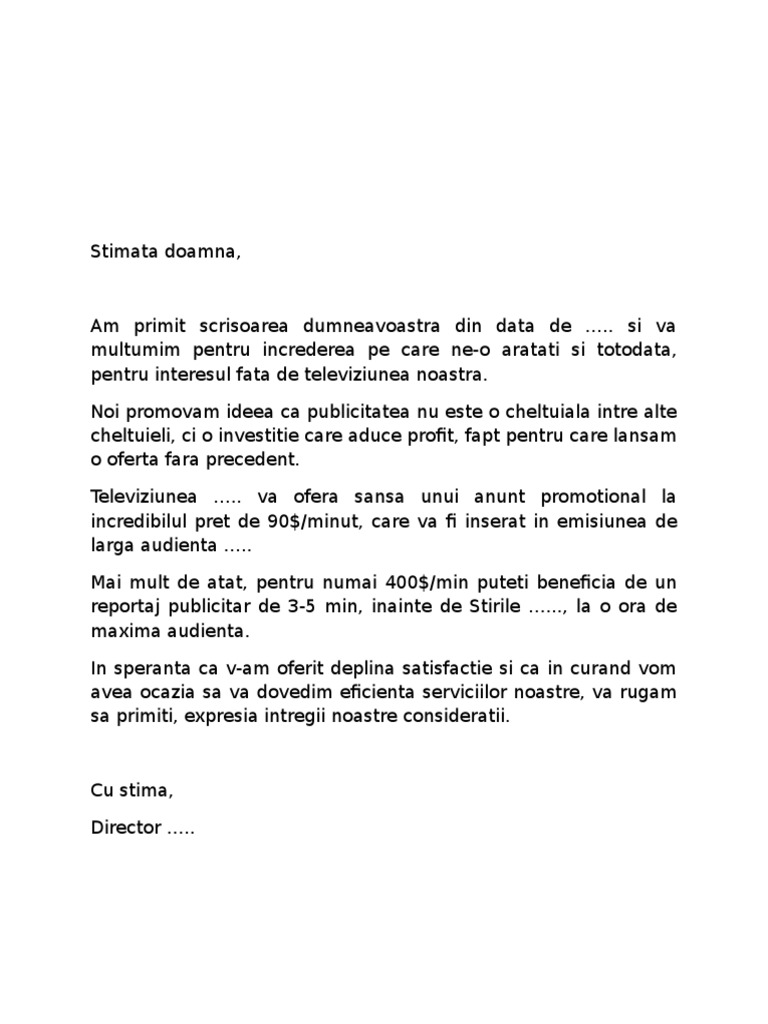untuk "Raspuns La Cererea De Oferta Model Completat"