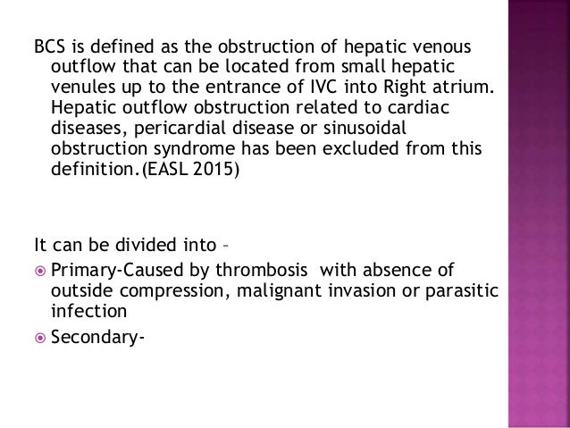 Budd chiari syndrome is defined as the obstruction of the hepatic and terminal portions of the inferior vena cava. Therefore, blood flow impact produced by. The symptoms of chronic and acute bcs may vary slightly from one another.