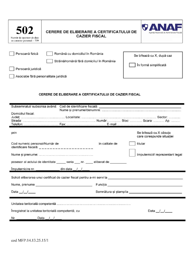 vizitati articolul complet aici : https://rrpb.ro/dreptul-imigrarii/cum-pot-obtine-codul-nif/ Cetatenii straini ce doresc obtinerea codului nif (numar de identificare fiscala), trebuie sa se adreseze administratiei finantelor. Se admite cererea formulata de petenta federatia nationala mine energie, cu sediul in bucuresti, str. Obtinere a certificatului de atestare a impozitului platit in cazul in care nu primesc certificat de rezidenta fiscala.