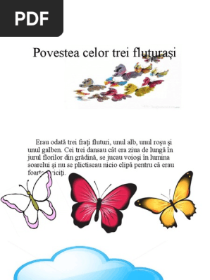 vizitati articolul complet aici : https://view.livresq.com/view/5ecb985fc0161926d66d025f/ Povestea celor trei fluturi frați adaptată și realizată de paul enache. O poveste interesanta despre trei fluturi care ne învață cat de important este sa fim uniți și să ne ajutăm in momentele grele. Erau odată trei fraţi fluturi, unul alb, unul roşu şi unul galben.